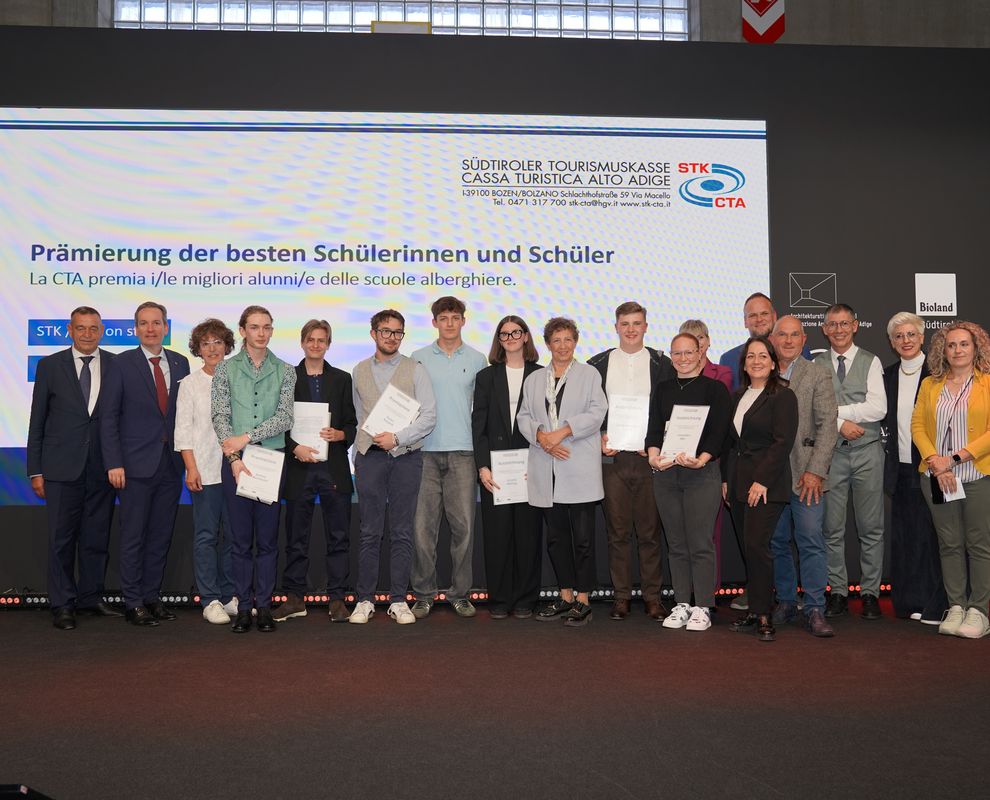 Sie sind motiviert und wissbegierig, beteiligen sich aktiv am Unterricht, lernen begeistert mit und setzen das Gelernte gekonnt in die Praxis um. So kann man die Schülerinnen, Schüler und Lehrlinge beschreiben, welche die Südtiroler Tourismuskasse (STK) im Rahmen der Fachmesse Hotel 2025 für ihre besonderen schulischen Leistungen ausgezeichnet hat. Insgesamt wurden sieben Schülerinnen und Schüler der Landesberufsschule „Savoy“ in Meran, des Berufsbildungszentrums „Emma Hellenstainer“ in Brixen und der italienischen Landesberufsschule für Hotelwesen „Cesare Ritz“ in Meran ausgezeichnet, die das Abschlussjahr 2024//2025 als Klassenbeste beendet haben.